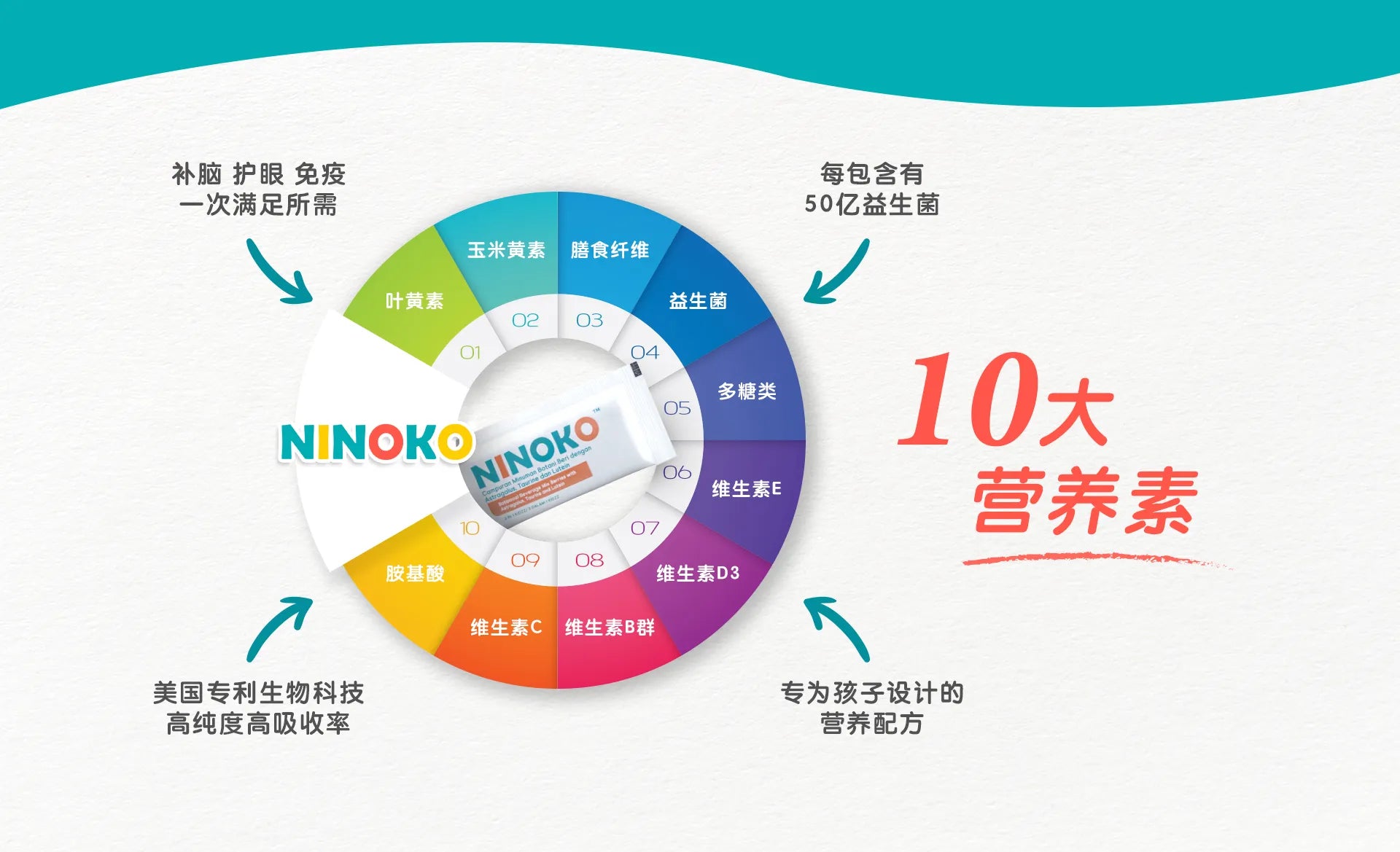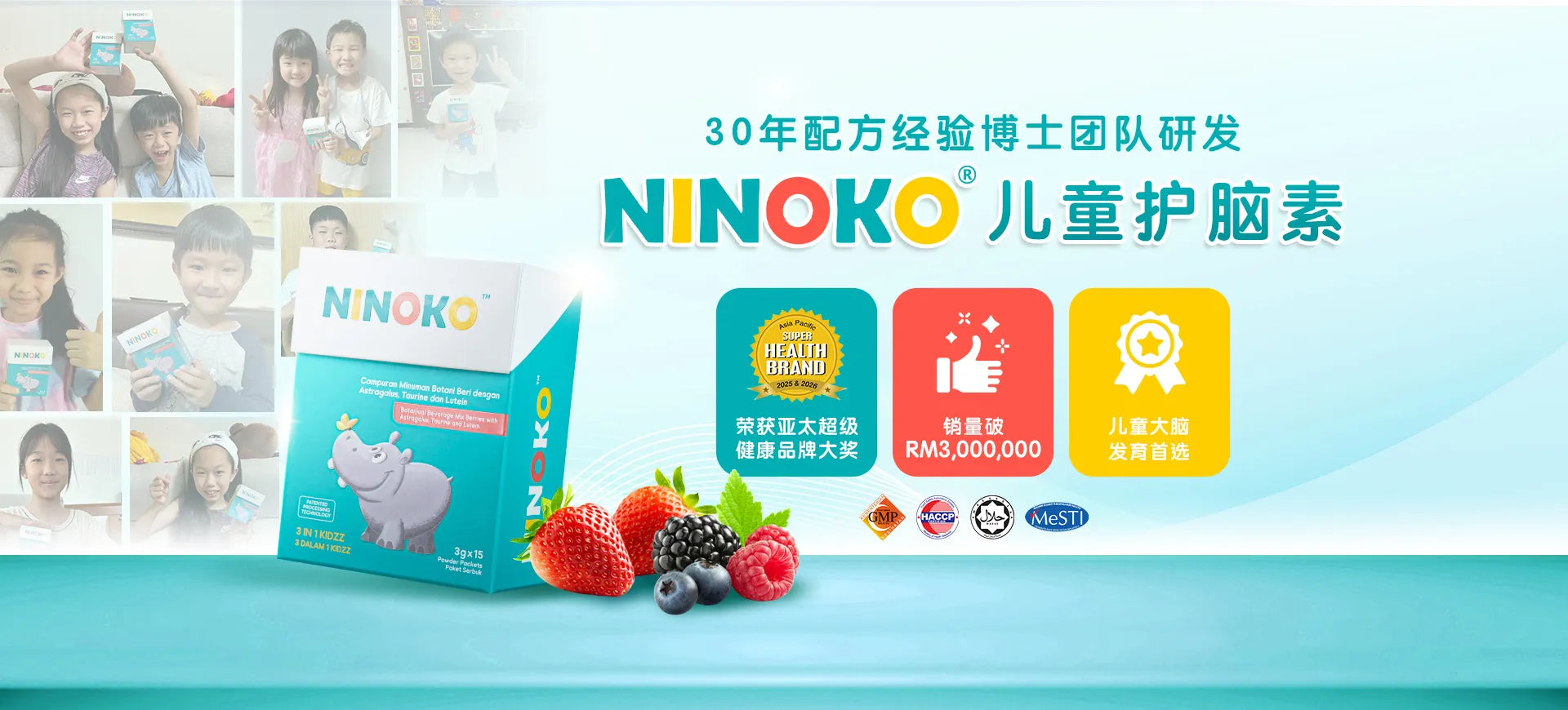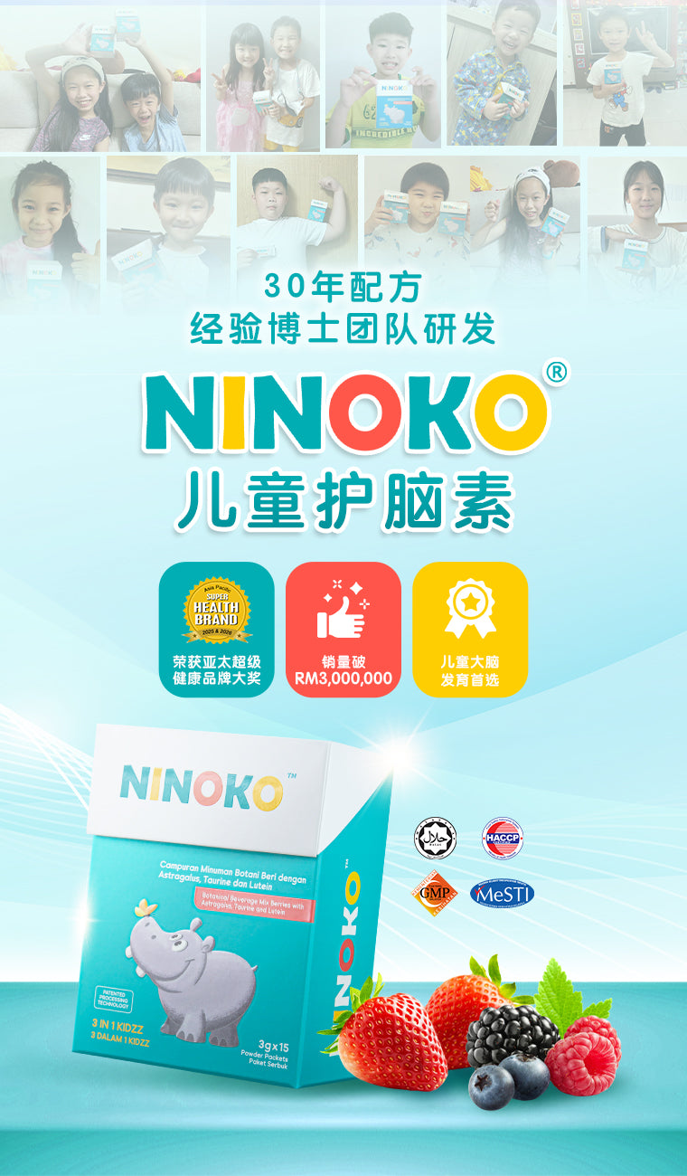 我儿子今年8岁。服用NINOKO快一个月了。儿子的专注力和思考力有些改善, 使用的句子和词汇也比较精准,而且做功课时少闹脾气。他喜欢NINOKO的果香味。我会让他继续服用NINOKO。
